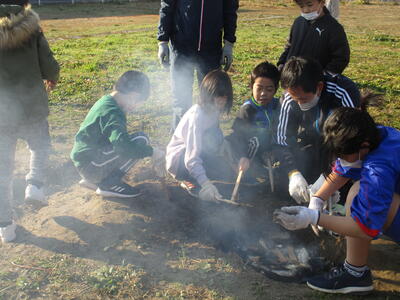 この後、焼き芋は上手に焼き上がり、みんなで美味しくいただきました。いつもお世話になっている先生に、お届けに来てくれる子もいて、なんともうれしい焼き芋づくりでした。