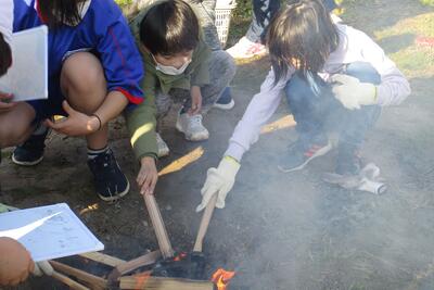 火は薪になかなか燃え移らないことも、煙は目に染みることも、体験を通して学びます。
