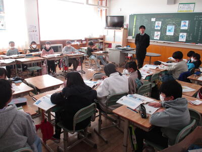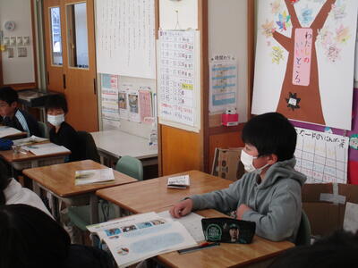 教材を通して考えた後は、自己を振り返る時間です。今まで自分が生き物とどのように関わってきたか、生き物の命をどう思っていたか、一人一人考えを伝え合っていました。
