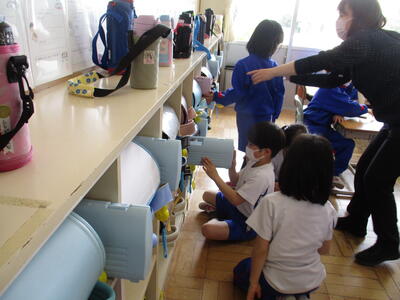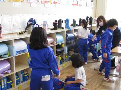 2023年4月21日 08時35分4月21日 2年生が、ロッカーの荷物を整えていました。ロッカーは一人に一つずつ割り振られていますが、どんな入れ方をしてもよいわけではありません。入れるものを整え、ランドセルや鍵盤ハーモニカの向きもそろえます。