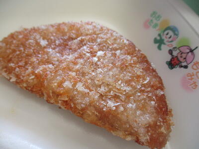 ボロニアカツ…なんて洋風な響き。大きめのボロニアソーセージに衣を付けて揚げたものですが、衣はサックサク、中はジューシーでした。カツという名前を聞くだけでテンションが上がる自分に世代を感じながら、おいしくいただきました。