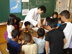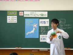 まずは、わかめの産地、原藻について学習しました。色の変化の実験を行ったりもしました。