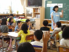 本日2,3校時目に3年生が食育教室(理研出前授業)を行いました。講師として、理研の方と学校給食センター栄養教諭の武藤先生においでいただき、わかめを題材に食育の授業を実施していただきました。