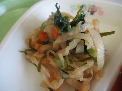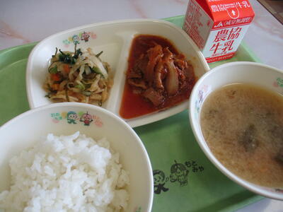 もう「マリネ」って響きだけで、おしゃれ料理をイメージするのは世代でしょうか。ネット情報によれば、マリネとは「酢やレモン汁などからなる漬け汁に浸す調理法、またその料理」「一般には南欧の調理法として知られる」とのこと。日本の給食で南欧を感じられるとは…給食は確実に進化しています。口いっぱいに広がるほどよい酸味に舌鼓を打ちました。