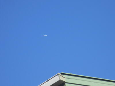 ふと見上げれば、校舎上空を飛行機が駆け抜けていきました。清々しいあいさつを聞きながら青空を見つめました。
