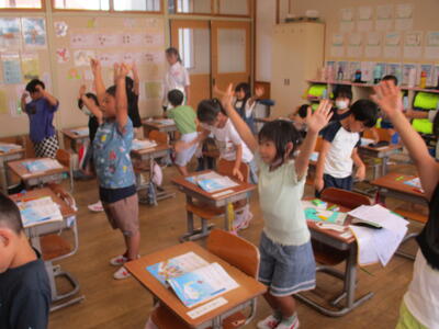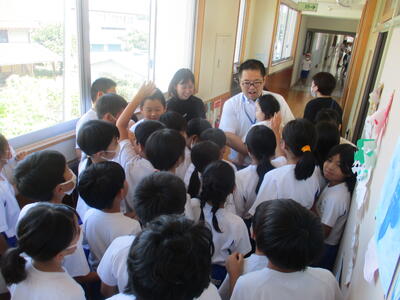 8月25日 今日は久しぶりの再会が続く4年生。3年生の時に教えていただいたもう一人の先生が、赤ちゃんを連れて遊びに来てくださいました。
