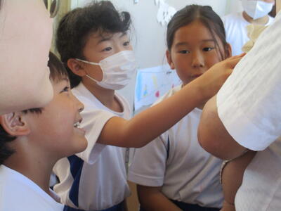 そう言って、赤ちゃんに、そっと優しく触れる子どもたち。自分より小さく、か弱い者と触れ合えば、人は自然と優しくなれるもの。4年生の表情を見ながら、年齢を超えてつながり、触れ合うことの大切さをあらためて思いました。
