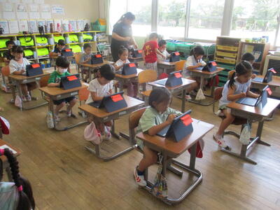 8月28日 一人一台タブレット端末を持っていることは、すでにご承知のことと思います。タブレット端末は、いまや文房具。ですから、定規やはさみ同様、タブレット端末も使いながら覚えていくようになります。「習うより慣れろ」とはよく言ったもの。