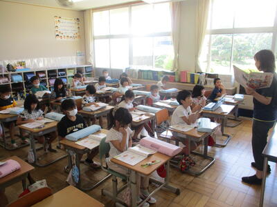 8月25日 2年生が音楽科「めざせ楽き名人」の学習をしていました。この題材では、「かっこう」を鍵盤ハーモニカで演奏するのですが、その前にみんなで歌ってみるところから学習はスタートします。
