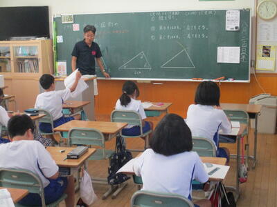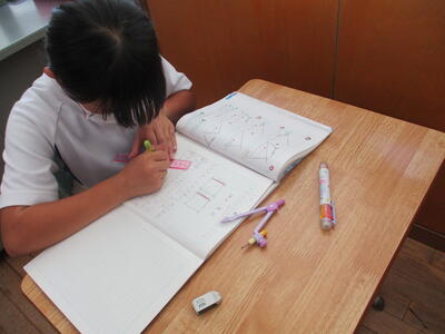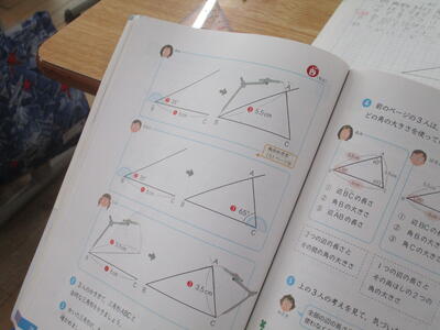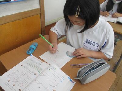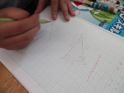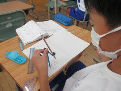8月24日 5年生の算数科。合同な三角形のかき方を学習していました。