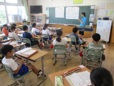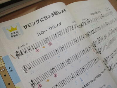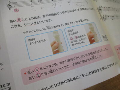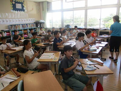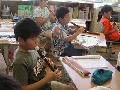 8月24日 4年生が音楽科の学習で、サミングにチャレンジしていました。