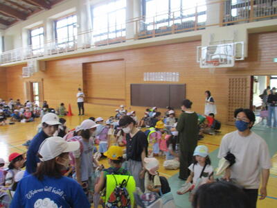7月14日 本日、引き渡し訓練を行いました。この訓練は、大地震や豪雨など、子どもだけで下校させることが難しい場合を想定しています。万が一に備えての訓練です。