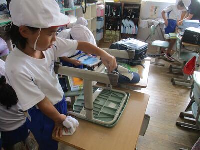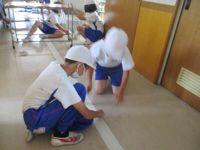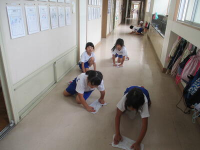 秘技「高速みがき」。そう言えば、去年の4年生も鬼掃除をしてたなぁそのDNAはいまだ健在。
