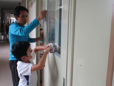 1年生も本気でいきます。ロッカーをぴかぴかにみがきあげます。