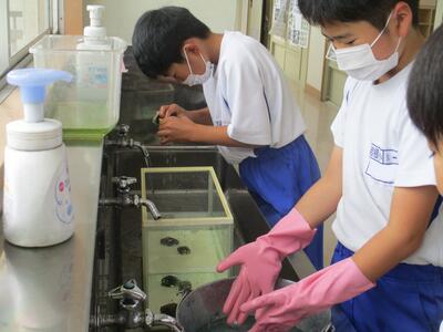 水槽も忘れずにきれいにします。とにかく本気です
