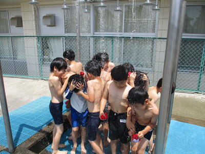 6月20日 同時刻、3年生も今年初めての水泳学習を満喫しました。3年生は、初めての大プールデビュー。緊張の夏です。