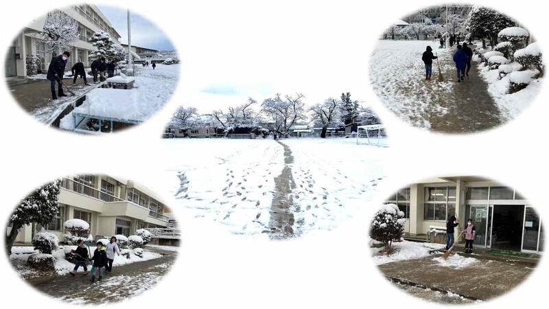 みんなが安全に学校に来れるようにと、学校に到着した職員や子ども達が次々に外に出て、除雪や駐車場の整理に。