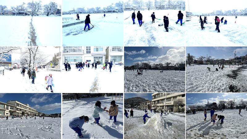 3学期が始まって2日目。校庭は雪に覆われ一面の銀世界に大変身していました。