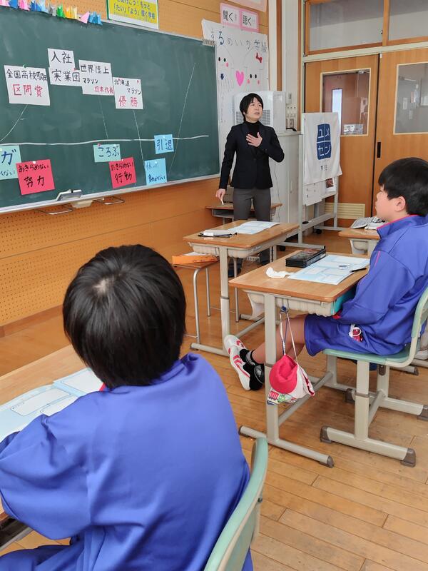 教室では、市河先生の人生についてのお話を伺いました。子どもたちは真剣に市河先生の話を聴き、受け止め、自分と向き合う時間を持つことができました。子どもたちからは、「夢の教室は、面白くて難しい感じがしました」「大変なこともあきらめずに頑張ろうと思います。そして、自分なりの努力も考えてみたいです」「心に残った言葉は『頑張るのは当たり前』です」などの感想が聞かれました。