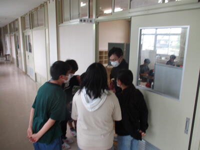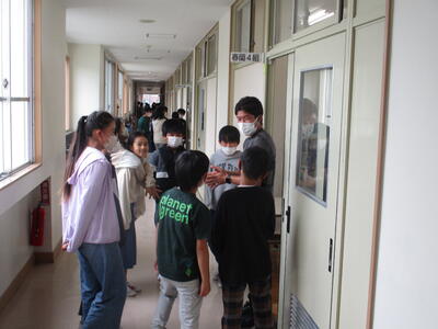走り幅跳びチームが、授業が終わったばかりの1年生教室に入っていくと、