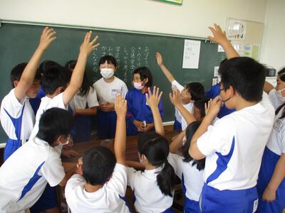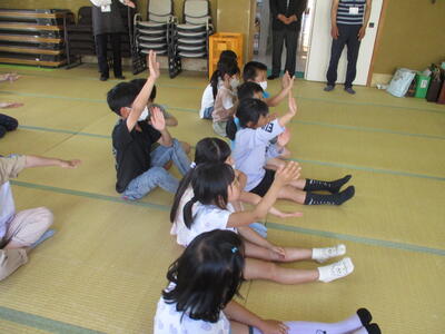 簡単な動きに見えるのですが、意外とこれが難しいのです。でも、子どもたちはとっても楽しそう。大人から教えていただくって、うれしいことなんですね。