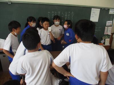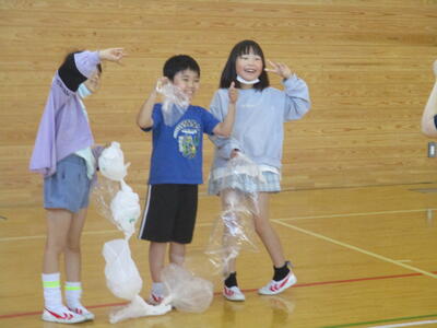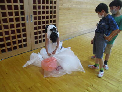いろいろな大きさの「空気のつみ木」をつなげていました。みんなで話し合いながら活動するから、アイディアも広がります。これも大切な「学び合い」です。