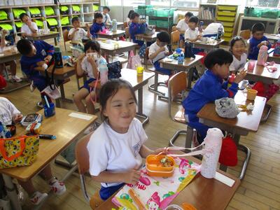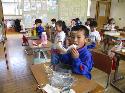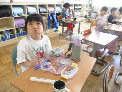 5月24日 本日、お弁当の日でした。子どもたちは、お弁当が大好き。口いっぱいに好物をほおばっていました。