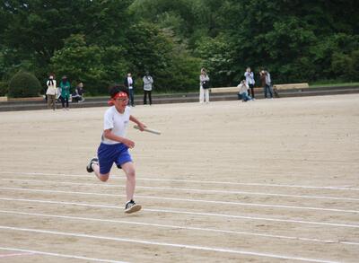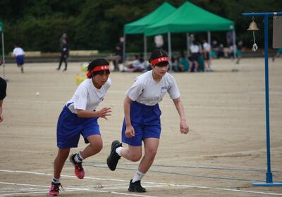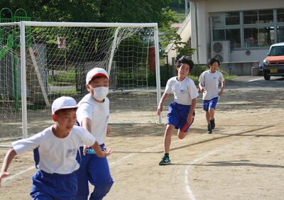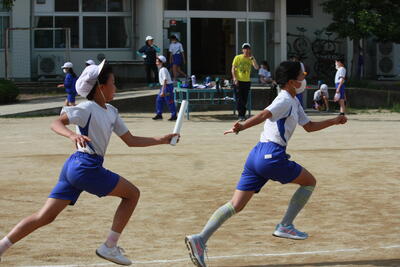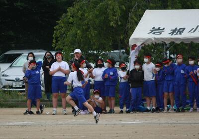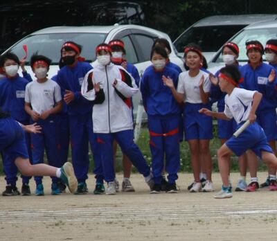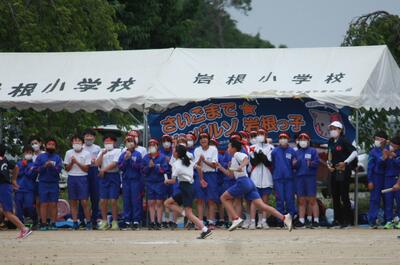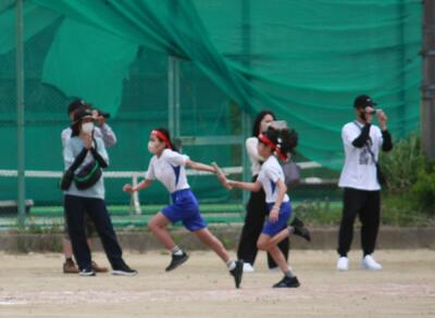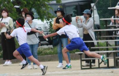 リレーは、岩根小6年生というチームの結晶。声援が背中を押します。