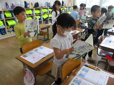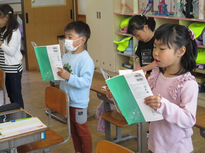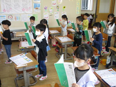 5月10日 1年生は音読もがんばっています。教科書を正しく持って、背中をピンと伸ばして読んでいます。これも大切な学習習慣です。1年生のうちにしっかりと身に付けさせたいものです。