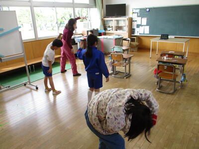 みんなで同じ動きをするので一体感も生まれます。学級がチームへ高まっていることを感じました。