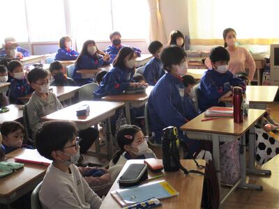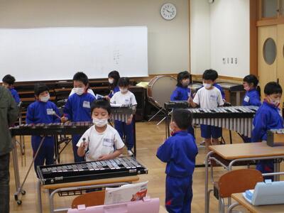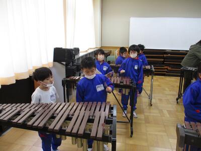 3月8日 音楽室からきれな音楽が聞こえてきました。音楽室は、上学年が使用することが多いのですが、今日はいつもより小柄な子どもたちが…。