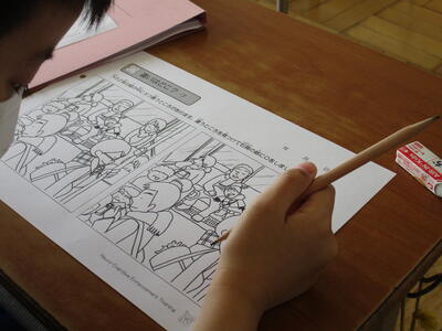 と言いながら、間違い探しをする春蘭学級の子どもたち。