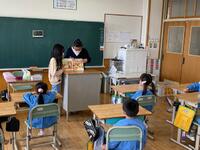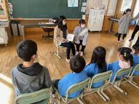 校長をはじめとした職員が説明している間、5年生と新入学児童の交流会が行われました。