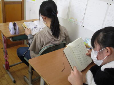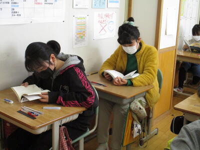 2月14日 単元テストを早く終えたようで、6年生が読書に親しんでいました。