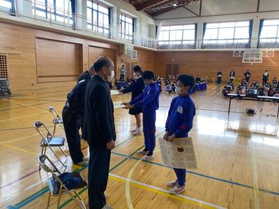 公民館長様のお話の後、一人一人に手作りの修了書とメダルが授与され、子どもたちはとても喜んでいました。