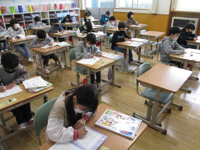 2月13日 2年生が、物音ひとつ立てずに鉛筆を走らせていました。