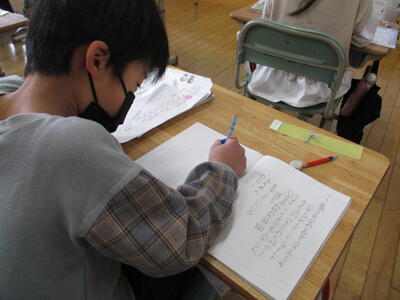 それに、今日は特別日程で早いお帰りだったので、帰り際に書くと慌ただしくなってしまいます。ですから、給食前にちょっとした時間をつくって、落ち着いて書かせていたのです。こんなところも指導の一工夫。