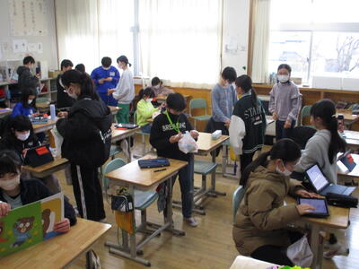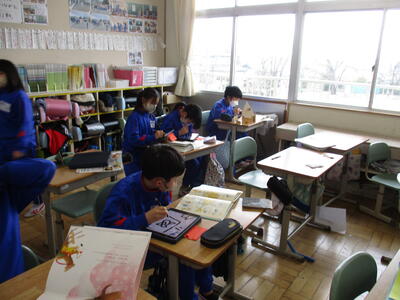 2月14日 今日は、4月に入学してくる1年生との交流会の日です。担当の5年生は、最後の準備と確認を行っていました。