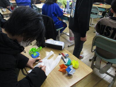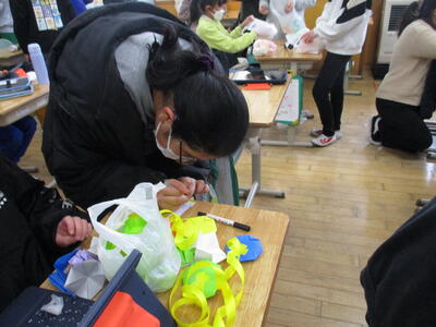 2月13日 5年生が何やら準備中。そうか、明日は年長さんとの交流会の日でしたね。
