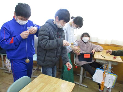 別な場所では、けん玉の猛特訓中。明日、年長さんに教えてあげるんですね。ありがとう。