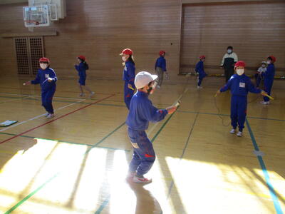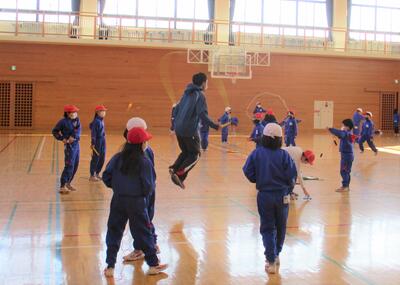 2月1日 業間の休み時間、2年生が体育館に登場しました。なわとびタイムの始まりです。