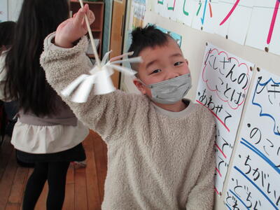 「ぼくのも見て」と、別な子が風車を披露してくる姿に1年生らしいかわいさを感じます。