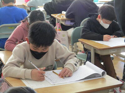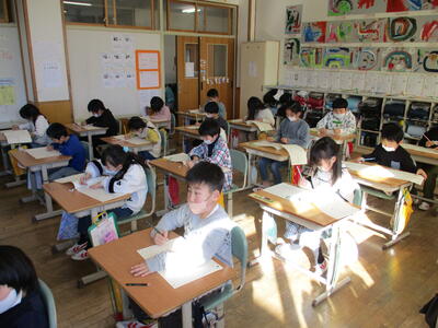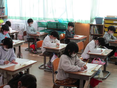 と言いながら、お気に入りポイントを話してくる子もいました。3年生で毛筆の学習をするのが待ち遠しいようです。一生懸命に取り組んでいる姿が目に浮かびました。