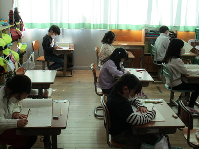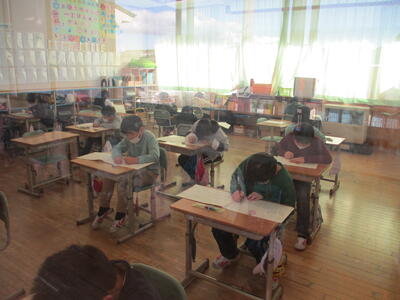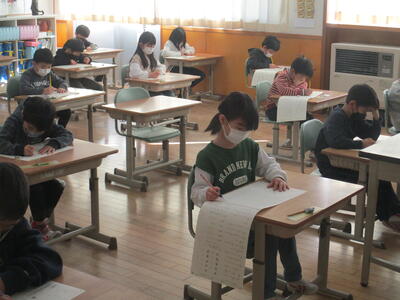 そう、今日は、全校一斉「漢字検定」の日です。1年生から6年生全員が、自分の目標級の合格を目指してがんばりました。級によっては、60分間という長い時間、集中して取り組むようになるのですが、どの学級でも真剣に取り組む姿が見られました。