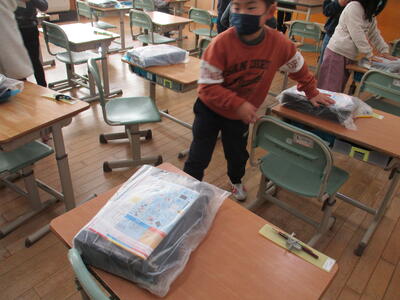 1月20日 2年生教室に、3年生に進級してから使用する毛筆セットが届きました。2年生は新品の毛筆セットを大事に大事に手提げバックにしまっていました。
