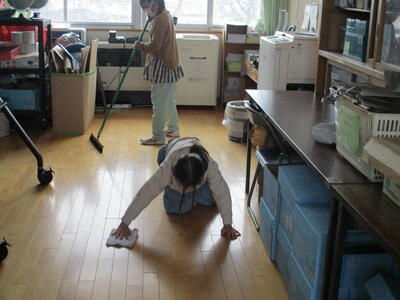12月14日 今週は、学期末の特別時程のため、昼休みは学級ごとに清掃を行っています。どの学年も、自分たちの教室や教室近くを丁寧に掃除していました。