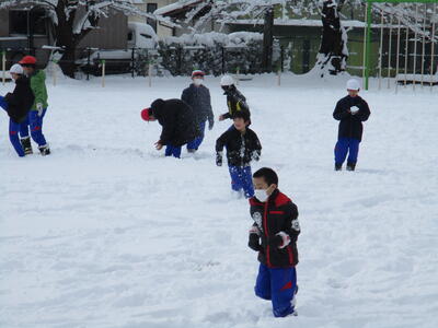 雪合戦やら、雪だるまづくりやら、とにかくなんやらかんやらで、降り積もった雪にテンション最高潮で遊んでいました。
