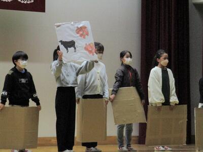 歴史の深い、ふるさと福島県。6年生は修学旅行で会津に赴き、豊かな自然や様々な文化に親しみながら、学びを深めました。そして今回、白虎隊の悲劇の歴史を土台として、自分たちで台本を考え、自分たちで舞台道具をつくり、自分たちで練習をがんばりました。すべて手作りの発表。そこに最高学年の底力を感じました。