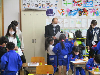1年生は、お客様がいらっしゃったことがよっぽどうれしかったようです。図画工作科で作った、自慢の作品を思い切りアピールしていました。
