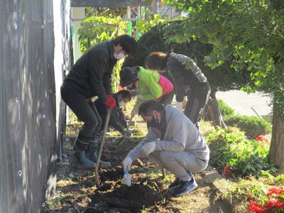 また、花壇も手際よく除草・整地をいただき、あっという間にきれいになりました。これで、子どもたちの栽培活動も充実していきます。